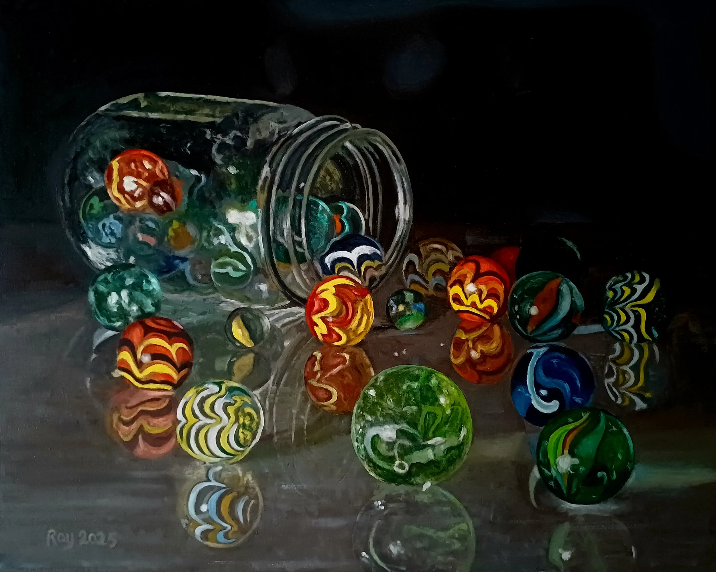 28 “WHO KNOCKED OVER THE ORANGES?” oils on canvas 50x40cm (2023) Exhibited RA Royal Academy of Arts 2023